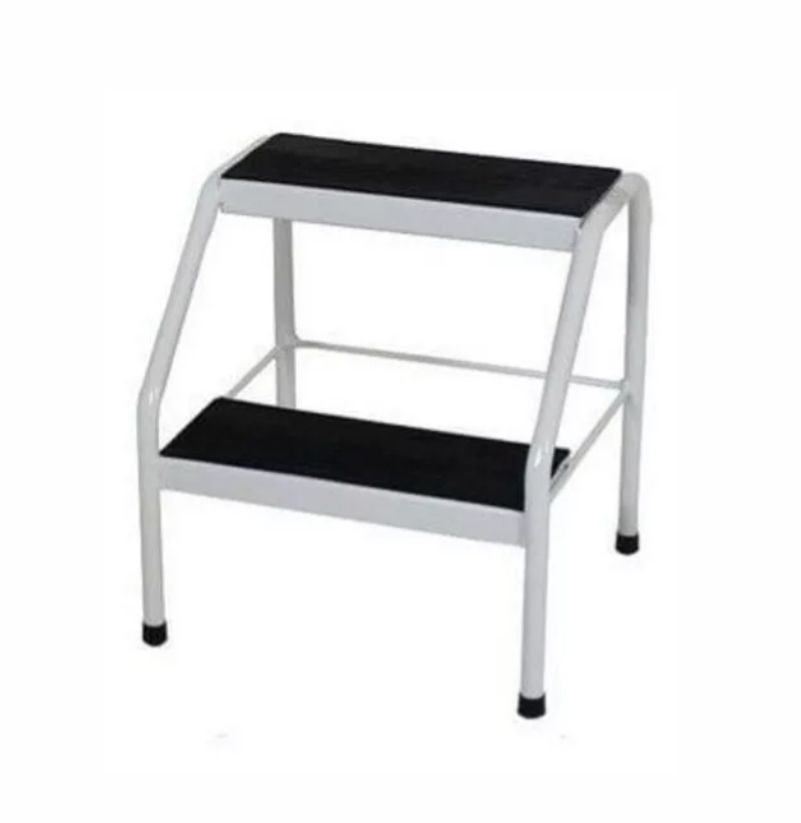 Esta escada hospitalar é projetada para proporcionar acesso seguro a áreas elevadas. Com dois degraus revestidos com material sintético antiderrapante na cor preta, oferece estabilidade e aderência ao usuário, minimizando o risco de quedas.
